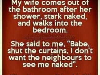My wife comes out of the bathroom after her shower, stark naked, and walks into the bedroom. She said to me, “Babe, shut the curtains, […]
