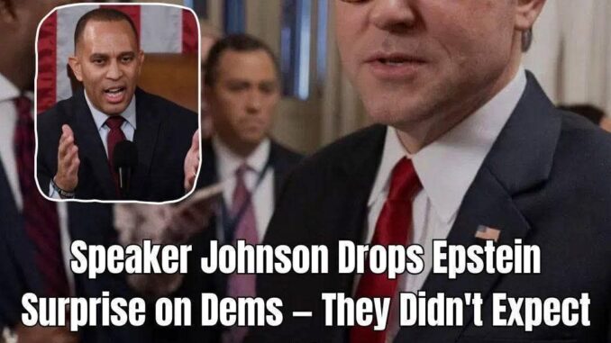 In a moment that left even hardened Capitol Hill insiders reeling, Speaker Mike Johnson stepped to the microphone and shattered the carefully crafted narrative surrounding the Epstein files, accusing Democrats of a politically timed “awakening” that ignored victims for years, while the clock on justice kept mercilessly ticking in the dark, raising unbearable questions no one in power wants fully answered…