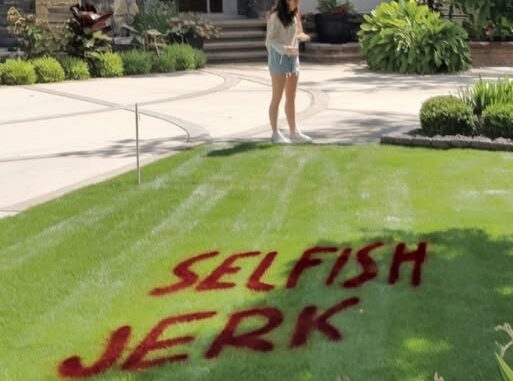 The next morning, I stepped outside to find bright orange spray paint scrawled across my lawn. In huge, bold letters, it read: SELFISH JERK.