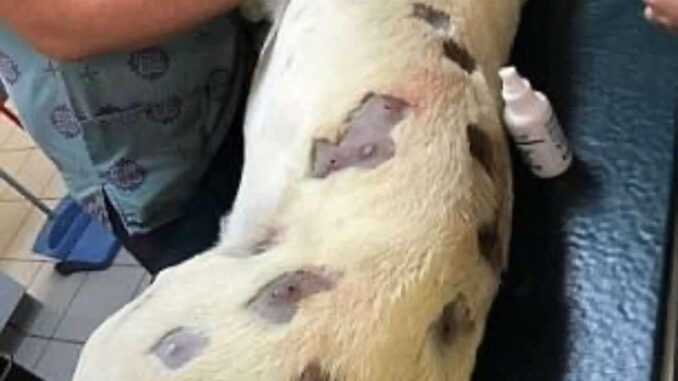 There were so many that the vet had to shave almost all of Jackson’s fur to take out the plastic shells. He removed 27 bullets in total and was forced to leave 20 where they were.