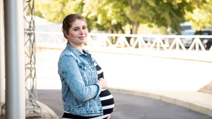 Against this backdrop of urban anonymity stood a pregnant woman, alone and clearly struggling against both the elements and her physical condition. Her thin coat provided inadequate protection against the cold, and her posture suggested both vulnerability and determination—the kind of quiet strength that many expectant mothers develop as they navigate the challenges of pregnancy, particularly when facing those challenges without adequate support.