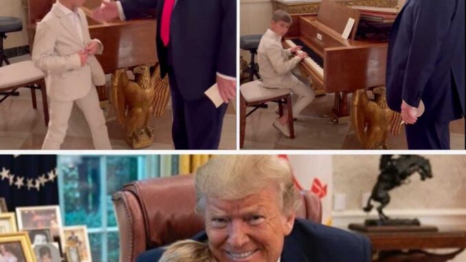 President Trump says, “You’re good,” in a proud, grandfatherly tone, as he puts a hand on his grandson’s shoulder and smiles as Theo finishes his piece. The straightforward, sincere conversation swiftly won over hearts on social media, with many people complimenting the former president and his grandson on their lovely relationship.