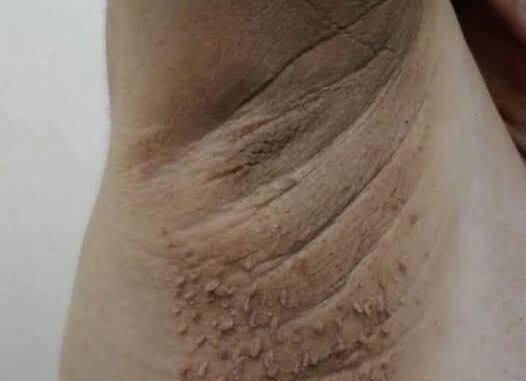 This condition is known as Acanthosis Nigricans, and it is commonly associated with insulin resistance and elevated blood sugar levels. Recognizing this